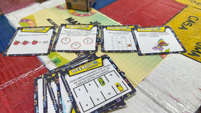As cartelas de desafios, elaboradas pelos estudantes, transformam as quatro operações em diversão