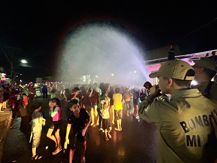 O ponto alto da programação foi o tradicional banho de mangueira oferecido pelo Corpo de Bombeiros, que arrancou gritos e gargalhadas da garotada