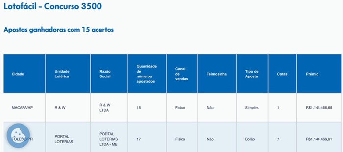 O bilhete premiado — com os números 01-02-04-05-06-07-09-10-11-12-14-16-18-19-21 — foi um dos seis ganhadores do prêmio principal, que também saiu para apostas do Paraná, Santa Catarina e São Paulo. O resultado confirma que a probabilidade de uma em quase 3,3 milhões pode, sim, virar realidade.