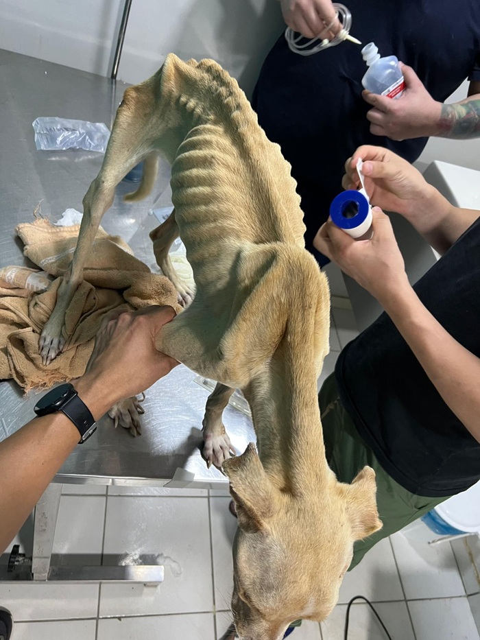Em um dos piores casos já registrados, a cadela foi encontrada “só pele e osso”, quase sem forças para ficar em pé