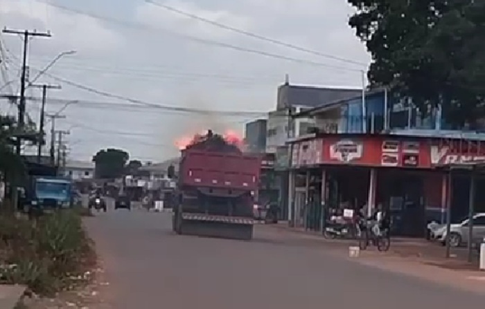 A manhã desta segunda-feira (27) no bairro Brasil Novo, na zona norte de Macapá, foi marcada por uma cena inusitada e perigosa que rapidamente circulou nas redes sociais. Um caminhão de cor vermelha foi flagrado transitando com a caçamba em chamas, provocando fumaça intensa e colocando em risco a segurança no trânsito local.