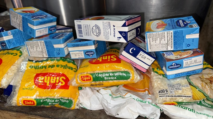 Com orgulho, ele mostrou as conquistas do dia: três panelas grandes, conchas, pacotes de milho, leite em pó, leite condensado e outros materiais. Graças às transferências bancárias, o recomeço está garantido.