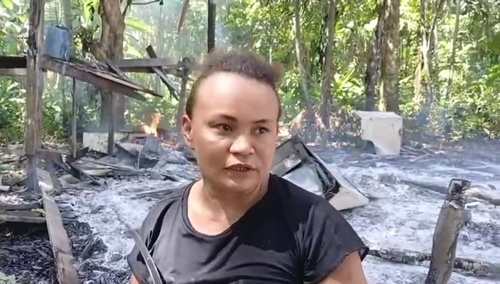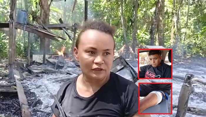 “Eu estava deitada. Me levantei e vi quando a voadeira chegou. Eles foram logo na casa do meu irmão, onde meu filho estava. Derrubaram a porta. Meu irmão correu pro mato, mas o meu filho eles conseguiram pegar e bateram muito nele, deram coronhadas na cabeça dele. Depois foram lá em casa, agrediram o meu marido e levaram ele pra outra casa (do meu irmão). Tacaram fogo na nossa casa, queimaram meus documentos, do meu filho e do meu marido. Perdemos tudo”, relatou Dione.