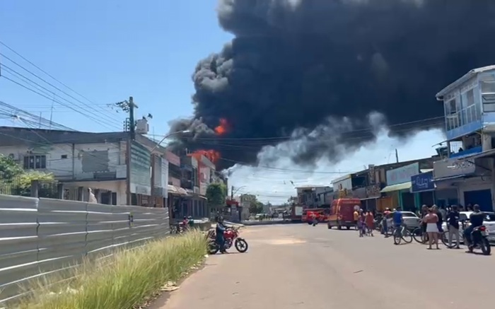 Um incêndio de grandes proporções atingiu, no início da tarde deste domingo (19), uma loja de plásticos localizada na área portuária de Santana. O Corpo de Bombeiros enfrenta dificuldades no combate às chamas devido à intensidade do fogo e à alta inflamabilidade dos materiais armazenados no local.