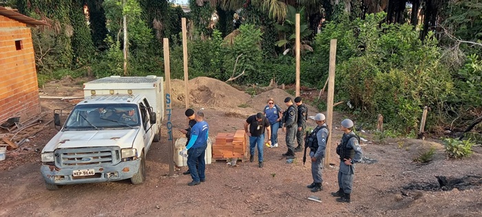 De acordo com o relato dos policiais, um morador informou ter visto dois homens — um de camisa preta e outro sem camisa – armados e comercializando entorpecentes em frente a uma residência de madeira.