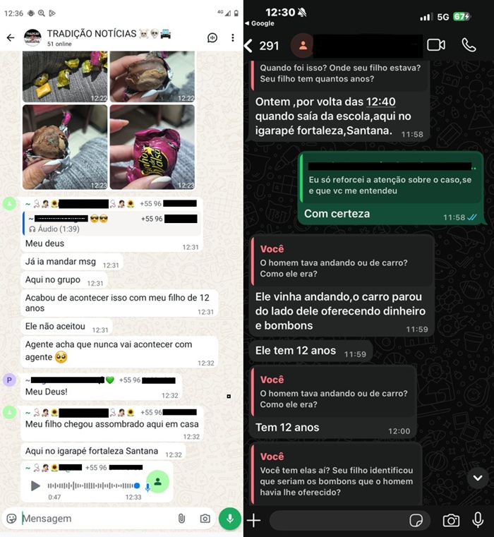 Em meio à circulação das mensagens, uma moradora do Igarapé da Fortaleza (no limite entre Macapá e Santana), a doméstica Fernanda Sousa, decidiu usar as redes sociais para fazer um alerta após o filho dela, de 12 anos, relatar uma situação suspeita.