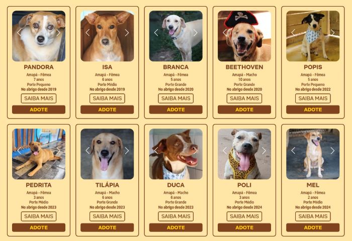 Laudenice Monteiro, fundadora do Anjos Protetores e voluntária há mais de 10 anos, relata que o Instituto Caramelo, de São Paulo, entrou em contato para fazer parte do seleto grupo. Ela celebra o convite e espera conseguir abrigos para os 30 cachorros disponíveis para adoção.