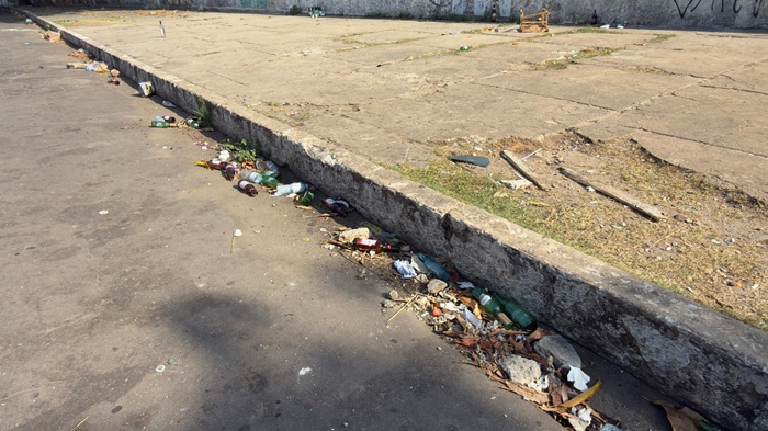 Adnilson Amaral obeserva a sujeira deixada pelos festeiros da Mendonça Júnior