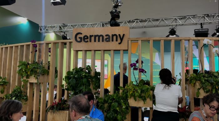Apesar da repercussão negativa dos comentários do chanceler alemão, Friedrich Merz, o estande da Alemanha na COP30, em Belém, segue funcionando normalmente com palestras, profissionais, jornalistas e outros responsáveis circulando pelo local. O movimento no pavilhão contrasta com a polêmica gerada pelas declarações feitas por Merz após sua saída do Brasil.