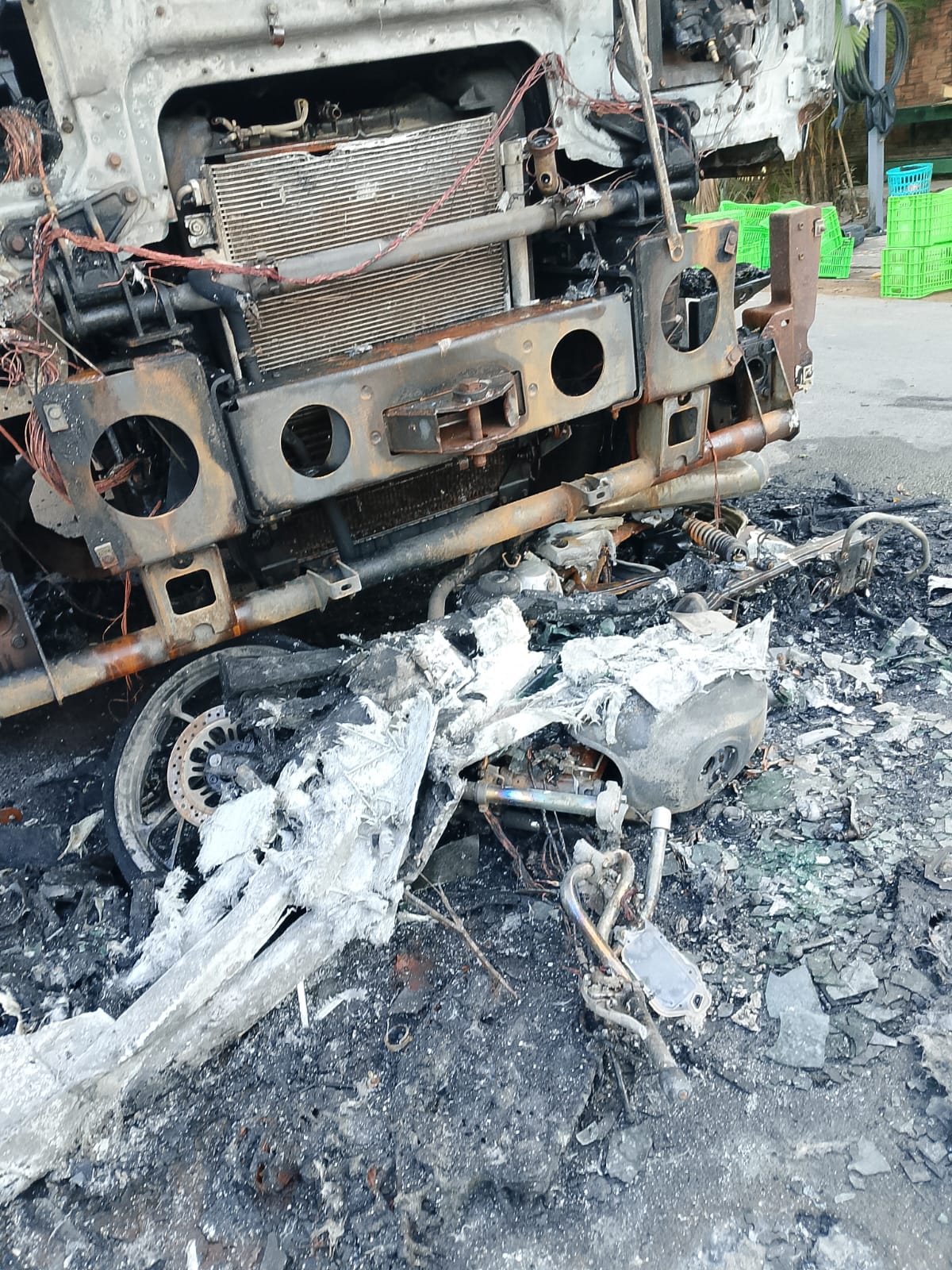 … deixaram estrago: moto virou cinzas. Fotos: Reprodução/Redes Sociais