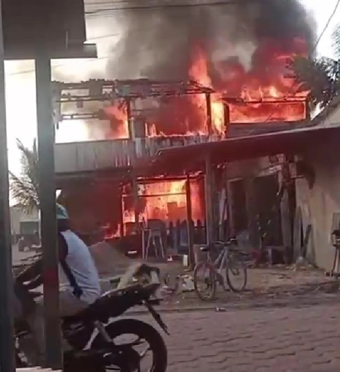 Um incêndio de grandes proporções destruiu completamente uma residência na tarde deste sábado (15), por volta das 17h, na Ilha de Santana, área rural do município. O imóvel, localizado em frente a uma arena de futebol, ficou totalmente consumido pelas chamas, e um esqueleto carbonizado foi encontrado entre os escombros.