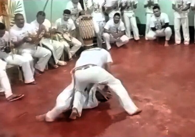 Um mestre renomado no meio da capoeira, a arte marcial mais brasileira de todas, chocou entidades do Amapá e da Europa ao ser flagrado agredindo um aluno que passava por um ritual de batismo, em um evento no município de Vitória do Jari, no sul do Amapá. O caso envolve o ‘Mestre Pará’, que durante cerca de dois minutos aplicou golpes de boxe e jiu-jitsu contra um jovem de aproximadamente 18 anos, que chegou a ser jogado violentamente contra no chão e foi alvo de diversos socos.
