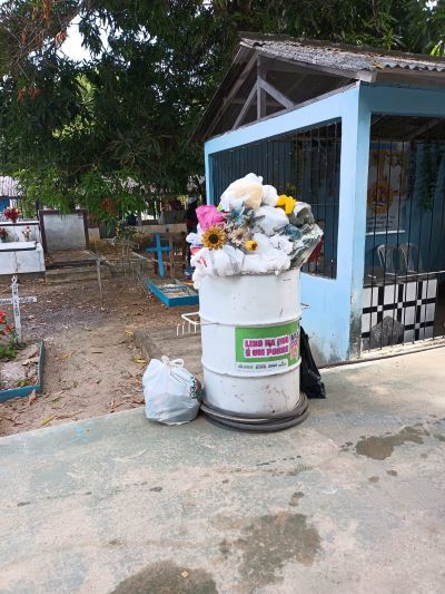 No entanto, no domingo, o MP encontrou os banheiros solicitados, mas havia covas abertas e sem qualquer isolamento, resíduos espalhados, queima de folhas e galhos e apenas um contêiner disponível para descarte.