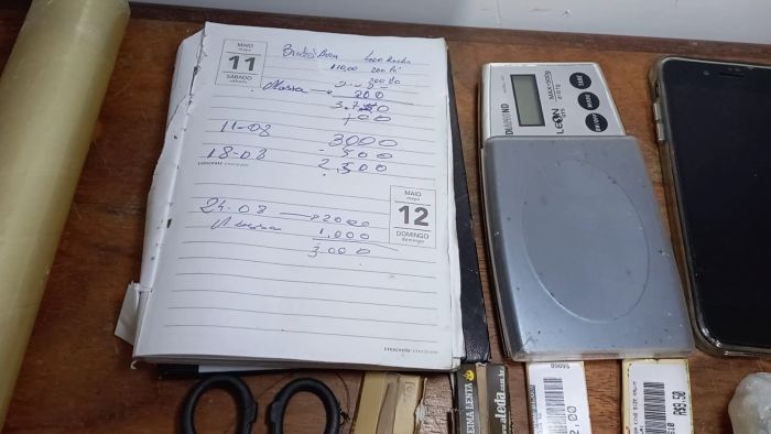 No total, quase meio quilo de entorpecentes foi apreendido, entre crack, maconha, skank e cocaína. Os policiais também encontraram celulares, um notebook, dinheiro, balança de precisão e um caderno com anotações do tráfico.