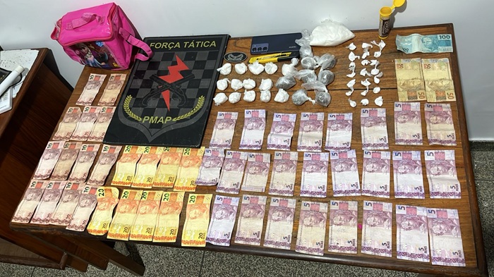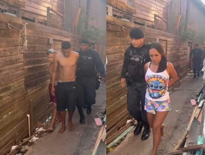 Os suspeitos — dois homens de 21 anos e uma mulher de 19 — foram flagrados em uma área de pontes do bairro Cidade Nova, conhecida pela forte atuação de uma facção e pela intensa comercialização de drogas. Eles foram cercados e abordados pelos militares durante o patrulhamento.