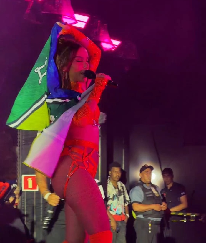 O clima de celebração se intensificou em um dos momentos mais simbólicos da noite, quando Anitta empunhou a bandeira do Amapá no palco. Foto: Eli Fernandes