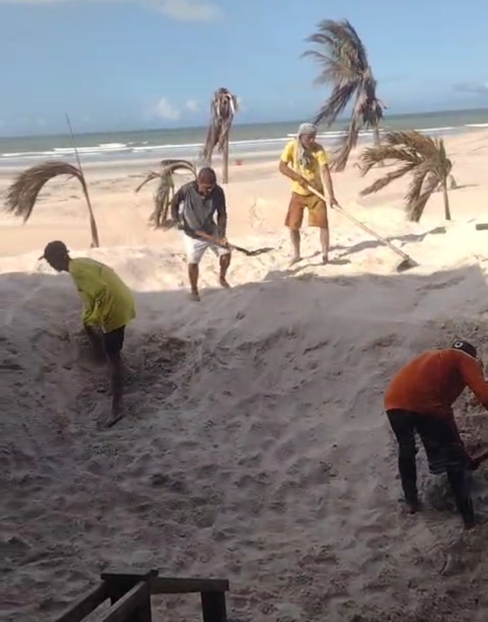 Durante esta época do ano, os ventos fortes aceleram a formação de dunas, que se acumulam rapidamente na faixa de areia. O fenômeno não é novo, mas comerciantes afirmam que, neste ano, a situação atingiu um nível crítico. Em vários pontos da praia, a areia se acumula na frente dos estabelecimentos, formando barreiras que dificultam e em alguns casos praticamente impedem o acesso de clientes, funcionários e veículos de entrega.