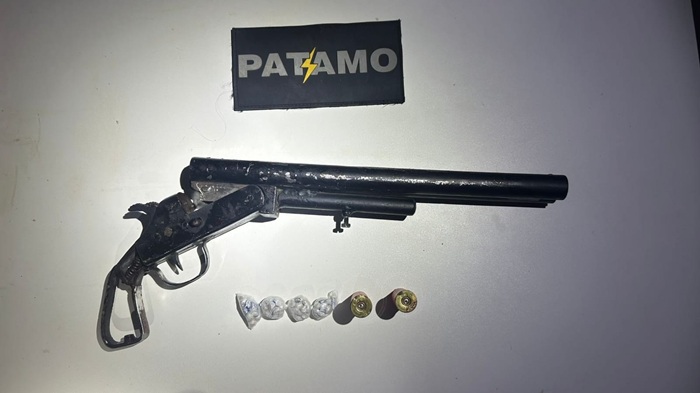 O oficial responsável pela ocorrência relatou que, ao notar novamente a presença dos policiais, o suspeito correu para os fundos do quintal e se abrigou em uma casa que estava com a porta aberta. No local, a equipe se aproximou e se deparou com A3 apontando uma cartucheira calibre 12 em direção aos militares.
