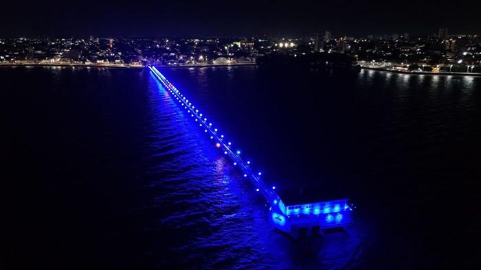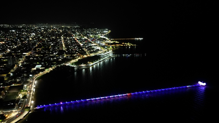 Novo brilho da orla: iluminação cênica transforma a captação de água do Rio Amazonas em cartão-postal noturno de Macapá. Imagens: divulgação