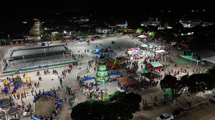 A reação mais entusiasmada veio das crianças, que correram pela praça para observar de perto as figuras natalinas, os túneis iluminados e os principais elementos da decoração, que já se consolidaram como tradição nas celebrações de fim de ano do município.