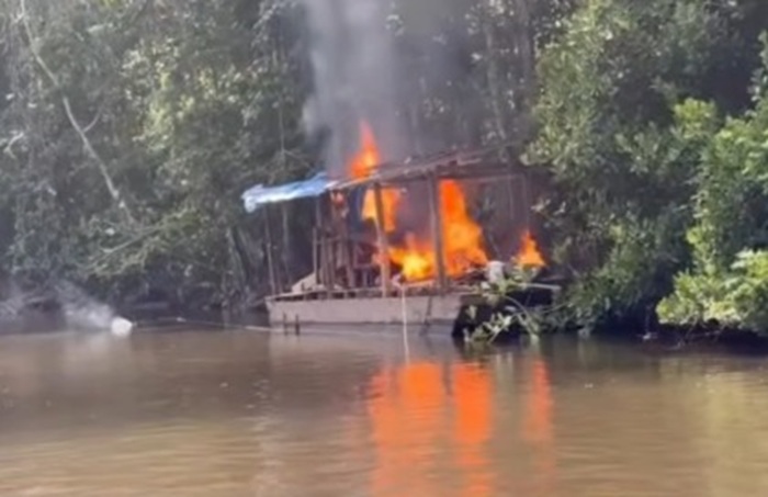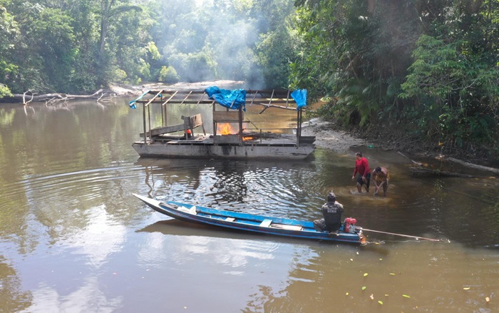 Mercúrio, ouro e equipamentos usados na extração ilegal foram apreendidos, e duas balsas de garimpo clandestino acabaram destruídas durante uma ação de fiscalização no leito do Rio Vila Nova, em uma área de floresta densa no município de Porto Grande. A operação também revelou um cenário de grave degradação ambiental provocado pela atividade clandestina.