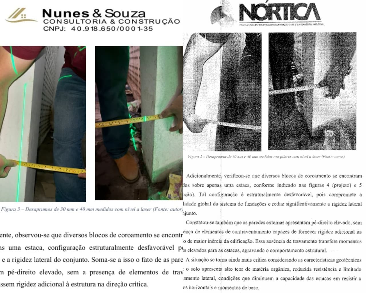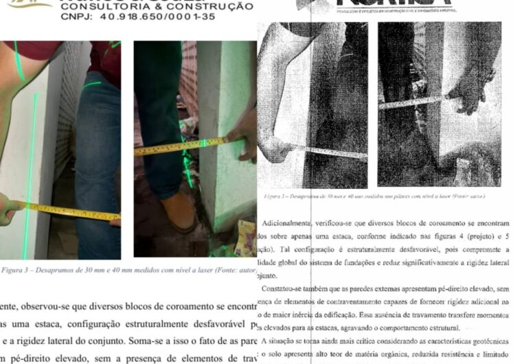 A situação piorou quando a prefeitura apresentou um segundo laudo, agora atribuído à Nortica Engenharia. No entanto, o documento era praticamente idêntico ao primeiro, alterando apenas timbre da empresa e assinatura, o que resultou numa nova autuação. O secretário de Obras, Cássio Cruz, leu os laudos nas redes sociais afirmando haver risco iminente de colapso na estrutura.