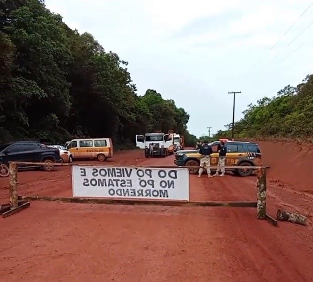 A Polícia Rodoviária Federal está no local para dialogar com as lideranças. Os caminhões da mineradora estão parados no sentido para Porto Grande.