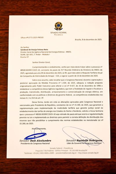 Para os dois parlamentares, não existe base legal para deliberar sobre o reajuste antes da aplicação da Medida Provisória 1.304/2025, já aprovada pelo Congresso e sancionada pelo presidente da República. A MP criou um mecanismo de modicidade tarifária que permite o uso de ativos da União para amortizar ou impedir aumentos nas contas de luz nas regiões Norte e Nordeste.