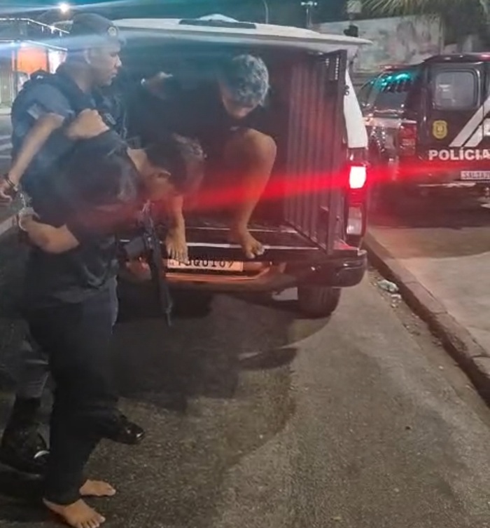 A patrulha também verificou que alguns objetos da loja já estavam separados para serem levados pelo trio. O proprietário foi informado sobre o crime, e os suspeitos — identificados como Victor Farias Cunha, de 22 anos, e Keven Tavares dos Santos, de 26 — foram conduzidos à delegacia, junto com o adolescente de 17 anos.