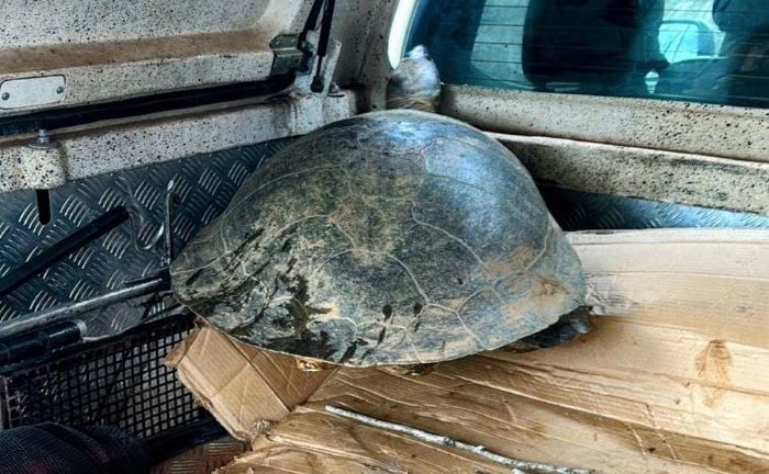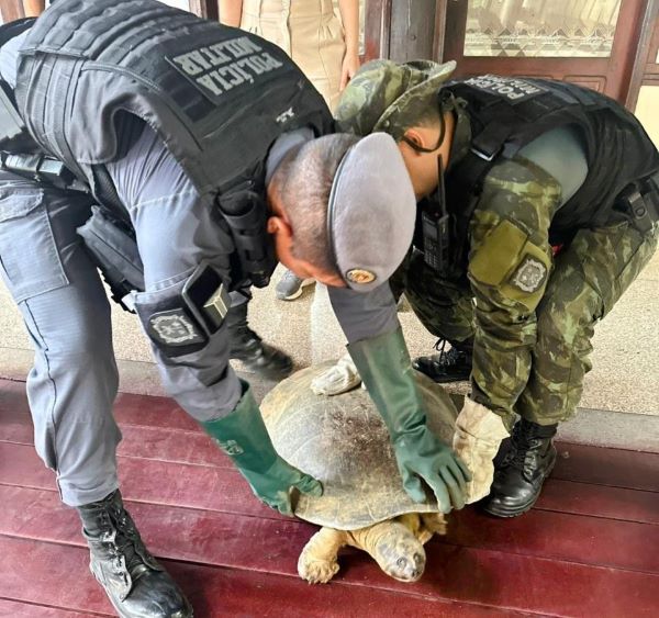 A estratégia deu certo. Após a compra, o morador acionou o Batalhão Ambiental, que recolheu o quelônio considerado de grande porte. O animal mede 73 centímetros de comprimento por 57 centímetros de largura.