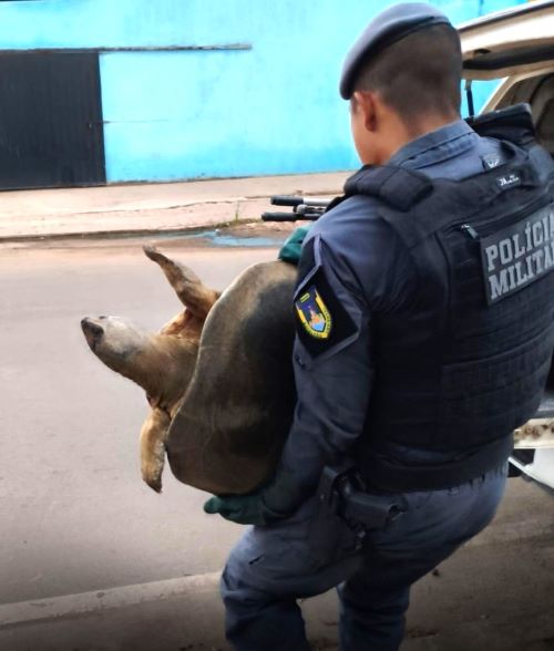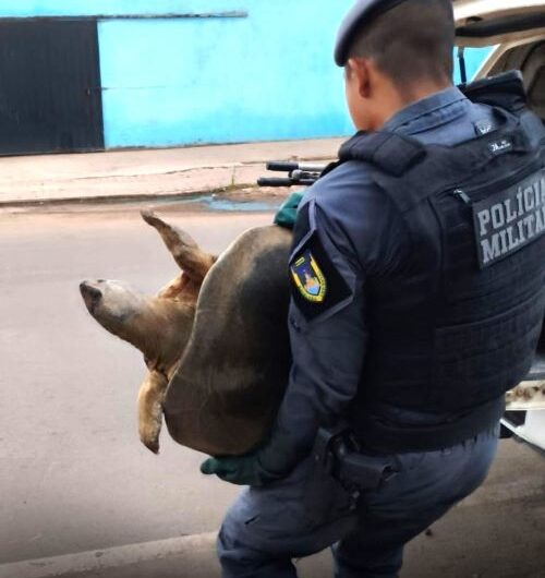 Com cerca de 50 quilos, foi levado na viatura…. Fotos: Batalhão Onça;/Divulgação