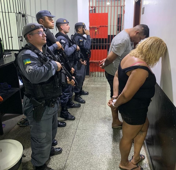 Os suspeitos resistiram à prisão, sendo necessário o uso progressivo da força e algemas, conforme a legislação e os procedimentos da PM. O casal foi conduzido à delegacia junto com mais de 2kg de drogas.