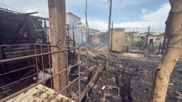Cerca de sete edificações de madeira foram consumidas em poucos minutos. Foto: Rodrigo Índio