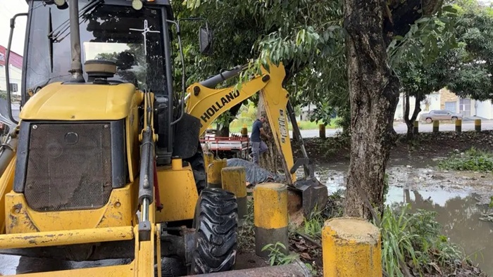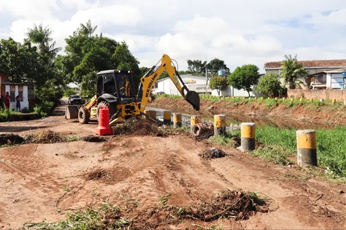 Ação busca reduzir riscos no período chuvoso; Maquinário pesado atua na desobstrução