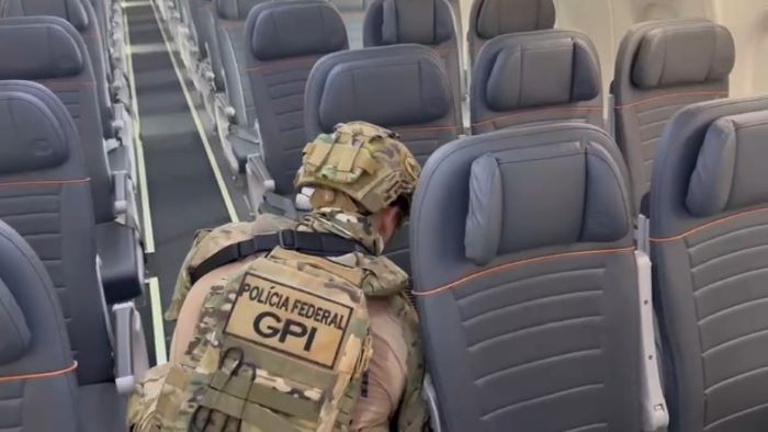 Com o pouso em Macapá, a PF foi acionada para adotar as providências cabíveis. A inspeção conta com apoio da COE da Polícia Militar do Amapá e do canil do BOPE da Polícia Militar do Amapá.