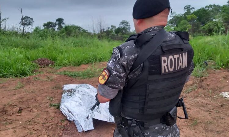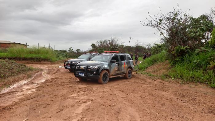 Durante patrulhamento na região, equipes da Rotam foram acionadas via Ciodes para prestar apoio a militares do 1º Batalhão e da Força Tática, que já realizavam diligências. No ramal, os policiais avistaram dois indivíduos tentando entrar em uma área de mata fechada.