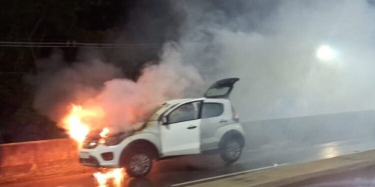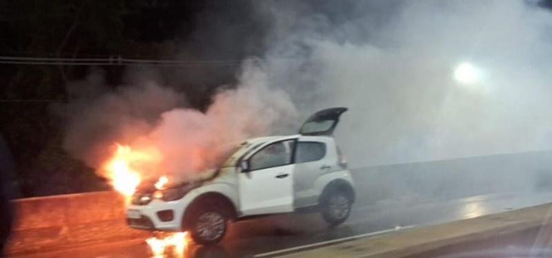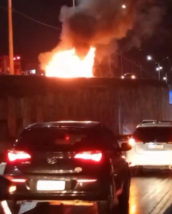 Um vídeo que circula nas redes sociais mostra o veículo tomado pelo fogo ainda na via, com chamas intensas, fumaça alta e um congestionamento formado por carros e motocicletas passando próximos ao local no momento do incêndio.