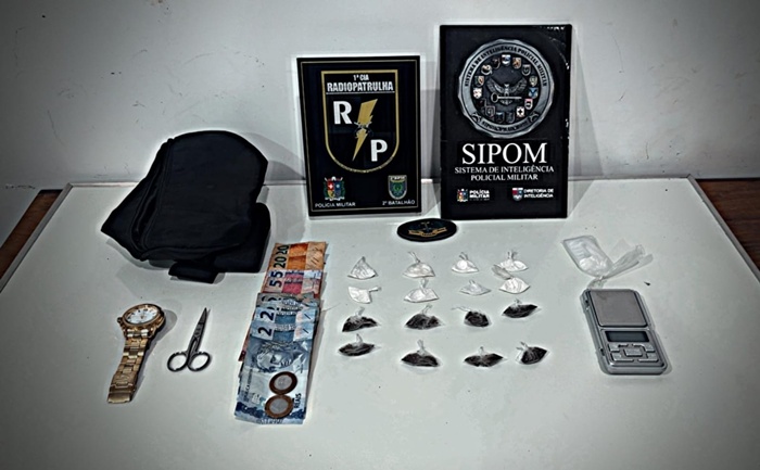 Após a abordagem, buscas na casa do suspeito encontraram balança e materiais ligados ao preparo das drogas