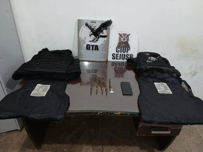 Com o suspeito, que é apontado como integrante da organização criminosa “UCA”, a polícia encontrou um colete à prova de balas e munições calibre 38 e 40. Segundo as investigações, o equipamento teria sido utilizado no assassinato de Magno Soares do Nascimento, conhecido como “Galo” ou “Ratão”, ocorrido no último dia 21, no bairro Fonte Nova.
