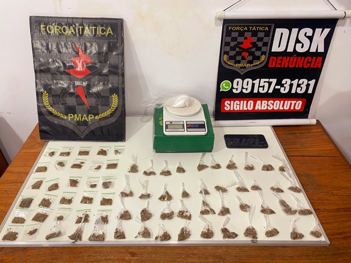 Uma ação do Batalhão de Força Tática da Polícia Militar resultou na prisão de um suspeito de 22 anos por tráfico de drogas. O flagrante ocorreu na noite desta quinta-feira (5), por volta das 21h, no bairro Zerão, zona sul de Macapá, após denúncia anônima.