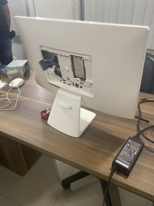 Um dos computadores que teve o HD extraído