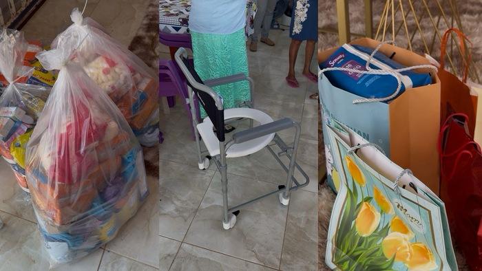 Mais do que homenagens, Tia Margarida recebeu aquilo que sua família mais precisava: apoio concreto. Foram entregues fraldas geriátricas, cadeira de rodas, cadeira de banho, kits de alimentação e itens de higiene pessoal. Pessoas também ajudaram com transferências em pix. As doações vão contribuir diretamente para melhorar a qualidade de vida da idosa, que enfrenta limitações de mobilidade e saúde.
