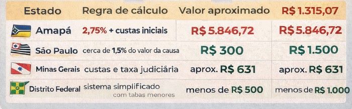 O custo não termina na fase inicial do processo. Caso a parte precise recorrer de uma decisão judicial, novas custas devem ser recolhidas. Em uma ação de aproximadamente R$ 20.000, por exemplo, o preparo recursal no Amapá gira em torno de R$ 1.000, valor superior ao observado em diversos tribunais brasileiros.