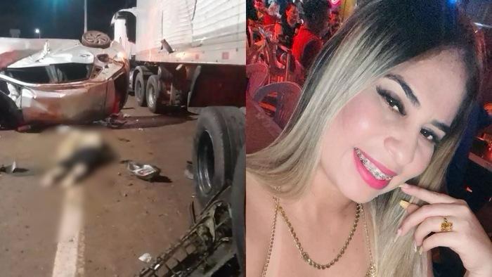 Condutora morreu no local após perder o controle do veículo e atingir um caminhão estacionado
