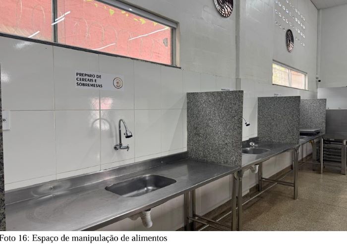 O documento ressalta que a cozinha apresenta condições estruturais iniciais favoráveis à produção de refeições em escala, com áreas organizadas e equipamentos compatíveis com a atividade, mas recomenda a regularização de procedimentos sanitários, aquisição de materiais e validação operacional antes da contratação definitiva.