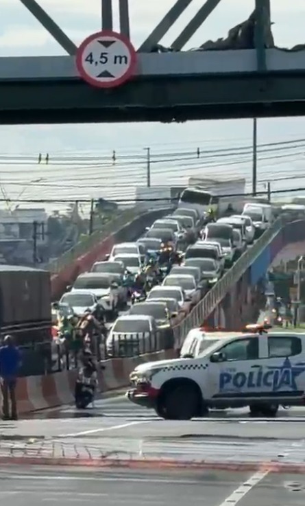 Com o bloqueio, motoristas tiveram que buscar rotas alternativas pelas ruas próximas. Quem seguia em direção ao aeroporto precisou redobrar a atenção e mudar o trajeto. Pedestres também enfrentaram dificuldades para atravessar a via e, sem acesso à passarela, alguns precisaram pular a divisória da pista.