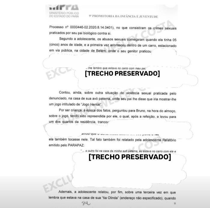 De acordo com os registros, a vítima afirma que os abusos teriam começado quando ela tinha cerca de 5 anos de idade. Um dos primeiros episódios teria ocorrido dentro de um carro, estacionado em via pública, em Belém.