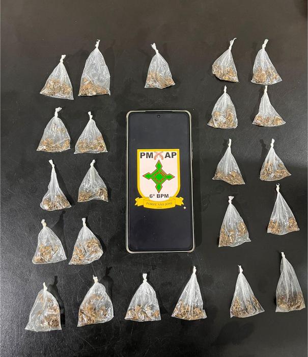 Durante a busca pessoal, foram localizadas, ocultas nas vestes do adolescente, 23 porções de substância supostamente entorpecente. Questionado, ele informou que havia adquirido o material em outro bairro da cidade e que realizaria a entrega utilizando o serviço de transporte por aplicativo.