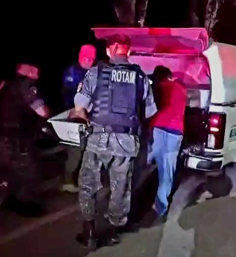 Com base nas denúncias, equipes da Rotam se deslocaram até o local e, nas proximidades da cabeceira da ponte sobre o rio Beija-Flor, avistaram dois suspeitos com as mesmas características, ao lado de uma motocicleta.