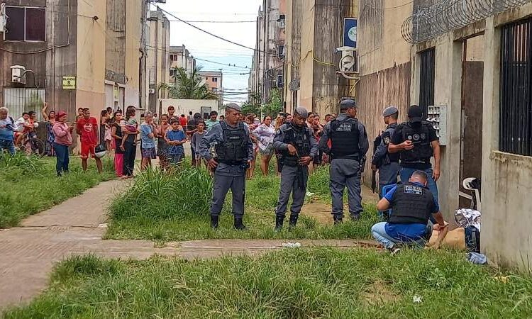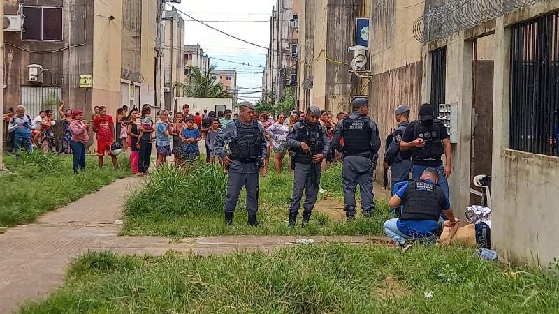 Um estudante de 15 anos foi morto com pelo menos três tiros na tarde desta quinta-feira (23), entre os blocos do Habitacional São José, no bairro Buritizal, zona sul de Macapá. Segundo informações da Polícia Científica, a vítima foi atingida por dois disparos no rosto e um nas costas. O adolescente ainda vestia o uniforme escolar no momento do ataque. De acordo com o tenente-coronel Ademar Leite, do 1º Batalhão da Polícia Militar, quatro criminosos chegaram ao local em duas bicicletas e cercaram o jovem por volta das 14h.